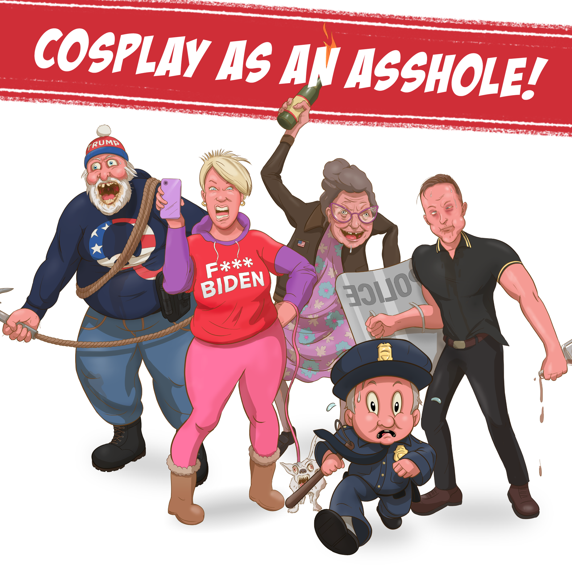 Play as one of six "patriot" characters as you battle through the Capitol hoarding ballots, taking hostages, and fighting the cops.